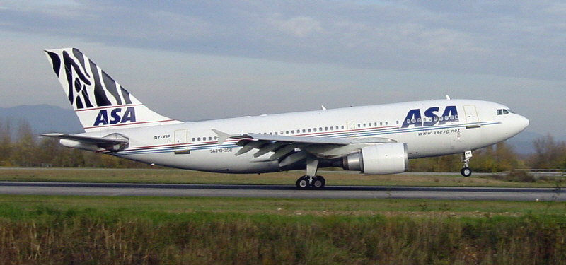 Der Airbus A310-308 5Y-VIP von African Safari Airways setzt am 30. Oktober 2002 auf der Piste 16 des EAP auf.