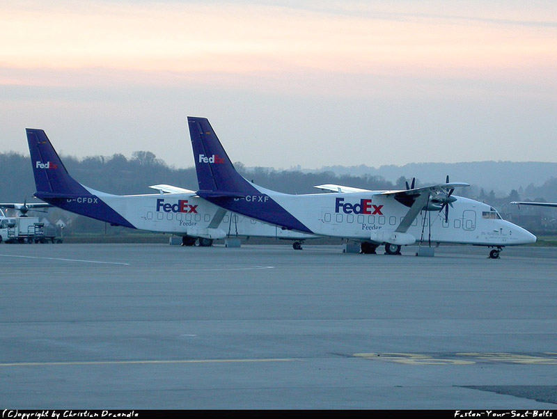 Die Shorts SD360-300 D-CFDX und D-CFDX der Farnair Germany, die den Betrieb eingestellt hat, am 6. November 2002 auf dem EAP.