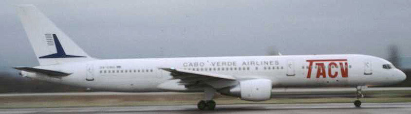 TACV Cabo Verde Airlines fliegt mit dieser Boeing B757-2Q8 D4-CBG zwischen dem EAP und Sal, 8. November 2002.