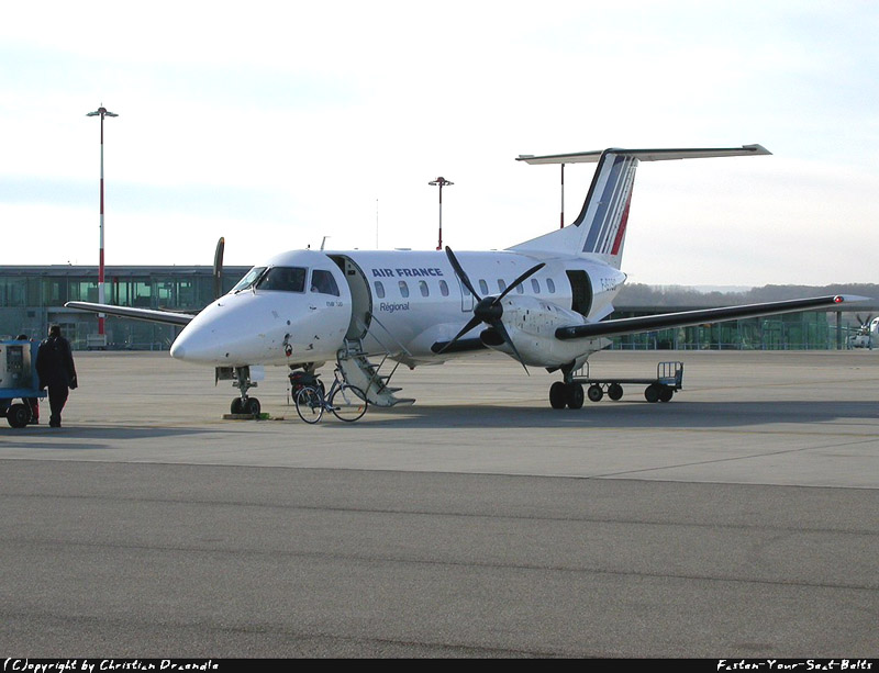 Diese Embraer EMB-120 Brasilia F-GTSG der Régional Airlines fliegt im Auftrag von Air France, 23. Oktober 2002.