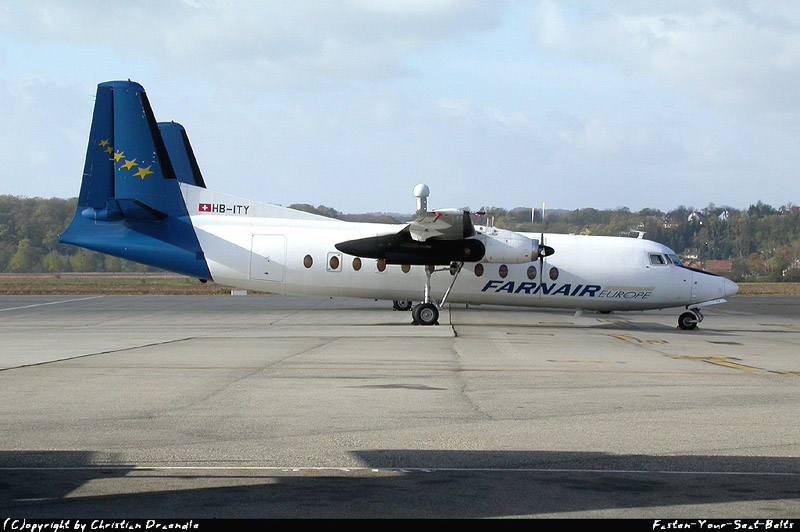 Diese Fokker F.27-500 HB-ITY gehört Farnair, 26. Oktober 2002.