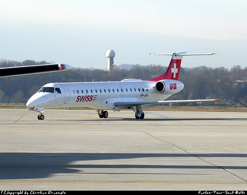 Die Embraer ERJ-145LU HB-JAK der Swiss am 23. Oktober 2002 auf dem EuroAirport.