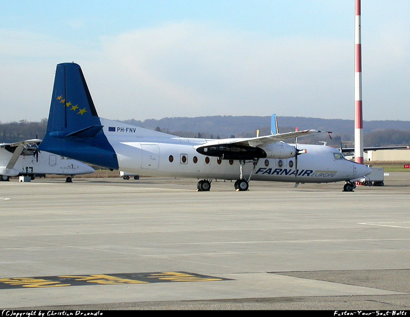 Die Fokker F.27-500 PH-FNV der Farnair Netherlands am 23. Oktober 2002 auf dem EuroAirport.