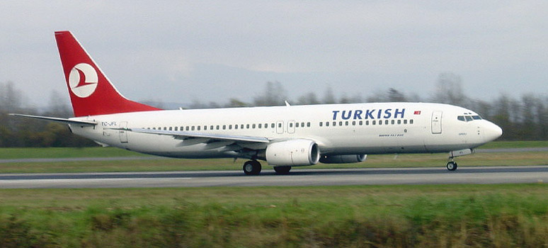 Die Boeing B737-8F2 TC-JFL von THY Turkish Airlines am 6. November 2002 auf dem EAP.