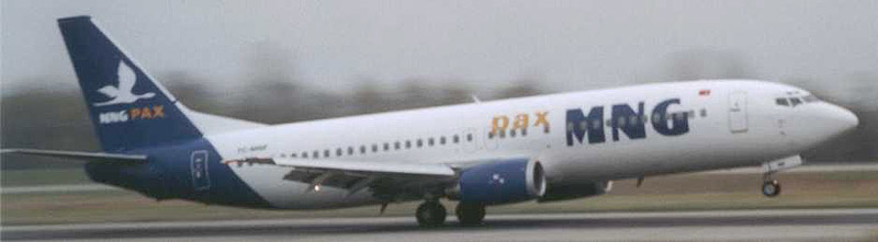 Boeing B737-4K5 TC-MNF der türkischen MNG am 1. November 2002 auf dem EAP.