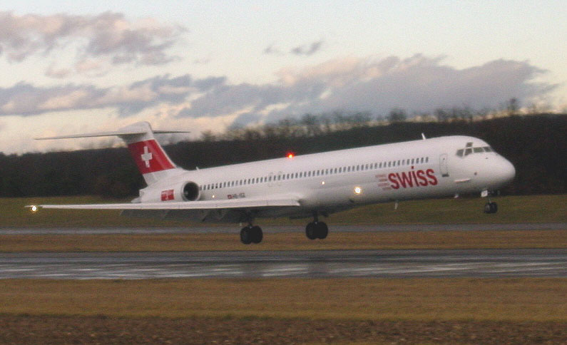 Die MD83 HB-ISZ der Swiss landet am