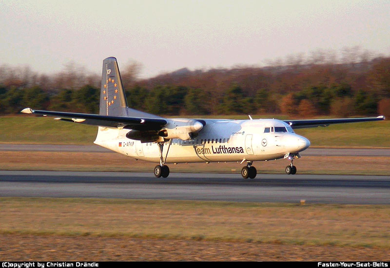 Diese Fokker 50 (D-AFKP) der ContactAir fliegt im Auftrag der Lufthansa auf der Strecke nach München, 14. März 2003.