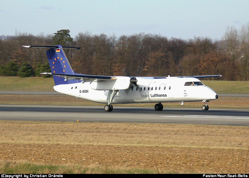 Dash-8Q-314 D-BEBA der Augsburg Airways am 8. März 2003 auf dem EAP.
