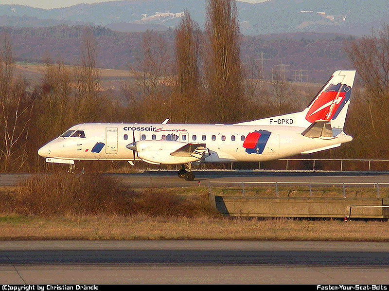 Saab 340B F-GPKD der Crossair Europe am 14. März 2003 auf dem EuroAirport.