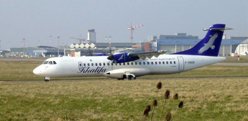 Khalifa Airways setzt nach finanziellen Schwierigkeiten auf den Linien vom EAP nach Algerien statt A319 neu ATR-72-212A ein, hier die F-OHGR am 22. März 2003.