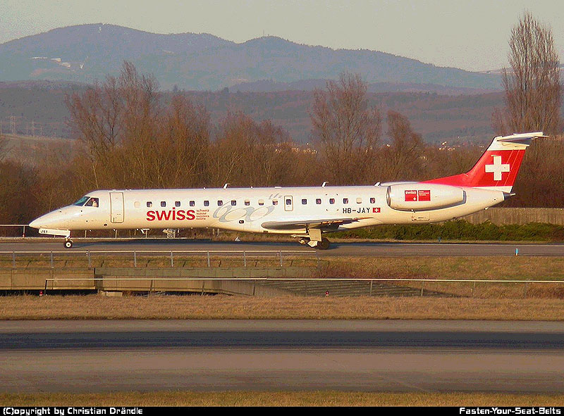 Embraer ERJ-145LU HB-JAY der Swiss mit "600th"-Sticker am 14. März 2003 auf dem EAP.