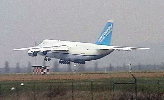 Die Antonov An-124-100 UR-82007 des Antonov Design Bureau startet am 21. März 2003 auf der Piste 34 des EAP nach Ouagadougou; die An-124 landete zuvor aus Baku kommend.