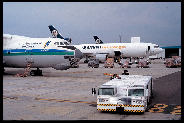 Expressfrachter DHL setzt teilweise Airbus A300 ein Eine Frachtbehälter von Lufthansa Cargo Eine Iljushin 76 von Novosibirsk neben einer DC-10F von Gemini