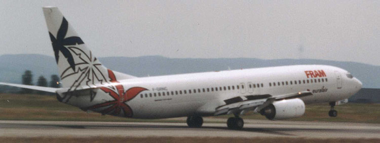Boeing 737-300 der Air Europa (EC-GEU; mit Andalucia-Sticker) startet am 05.08.00 nach Palma Boeing 737-800 der  Fram (F-GRNC) landet am 25.08.00) aus Catania Boeing 737-800 von SunExpress (TC-SUB) startet am 25.08.00 nach Antalya