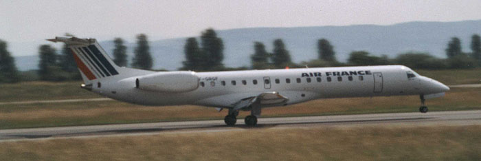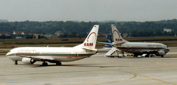 B737-400 (CN-RMG) und B77-500 der Royal Air Maroc im August 1999 auf dem EAP Embraer 145 der Air France (F-GRGF) landet aus Lyon kommend (15.06.01) Fokker 100 (F-GPNL) der Proteus Airlines (für Air France) aus Paris-CDG (13.05.01)