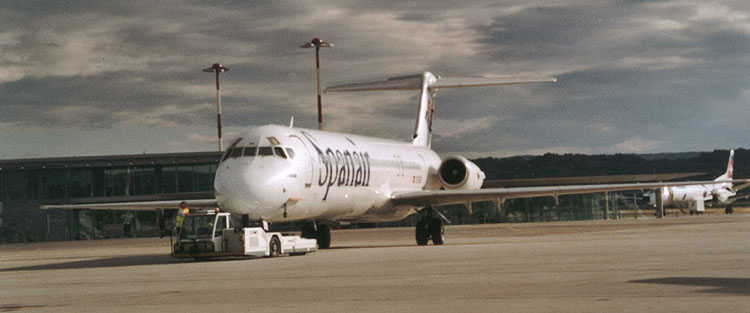 Sabena flog während der Schliessung von Strassburg den EAP an: Avro RJ85 (OO-DJT;25.08.00) MD83 der Spanair (EC-GQG) am 05.08.01 auf dem EuroAirport Gulfstream IV der Swedish Air Force am 22.03.97 auf dem EuroAirport