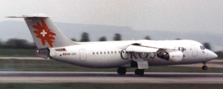 Avro RJ100 der Crossair am 31.03.02 auf dem EAP