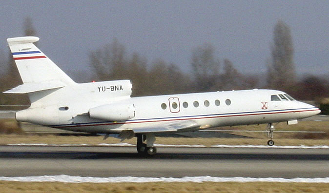 18. Februar 2003 auf dem EuroAirport: Falcon 50 YU-BNA der
