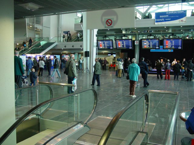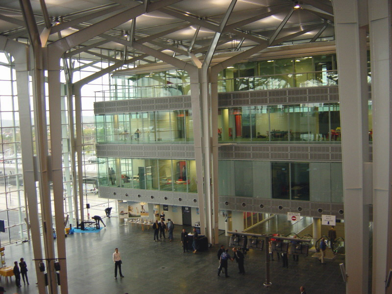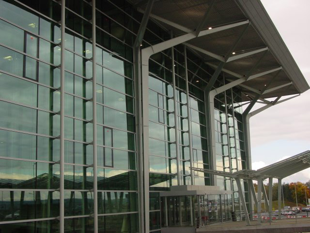 Das neue Terminalgebäude von Norden her gesehen, 19.10.02 Die Fassade des Nord-Terminals mit viel Glas, 19.10.02 Die neue Halle ist wesentlich geräumiger als der alte Flughof, 19.10.02