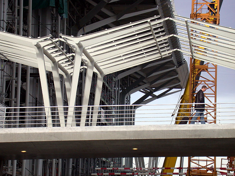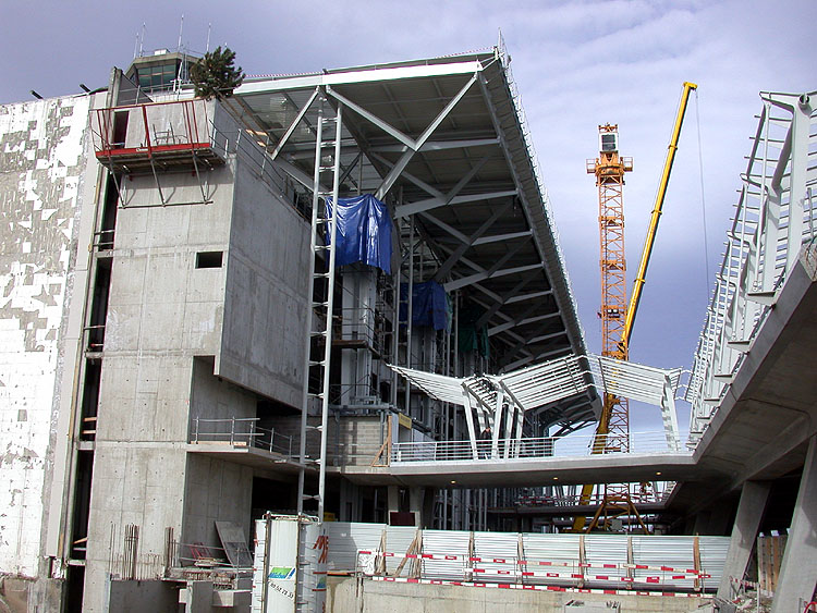 Ausbau des EAP-Terminals: Die alte Fassade der Südseite (11.02.02) Die neue Fassade und das neue Dach auf der Ostseite (11.02.02) Die Zugänge zum Terminal von den Anfahrtsrampen (11.02.02)