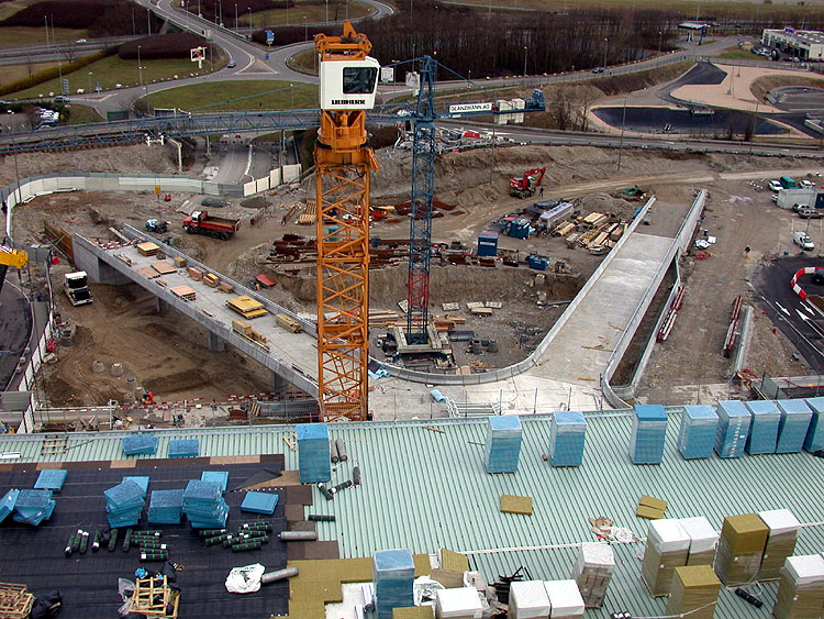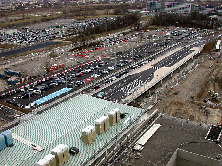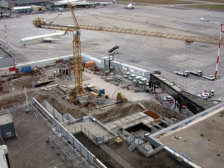 V-förmige Zufahrtsrampen auf der Ostseite (11.02.02) Die neue Rampen und Parkplätze im Schweizer Sektor (11.02.02) Vorbereitung der Terminal- erweiterung im Südwesten (11.02.02)