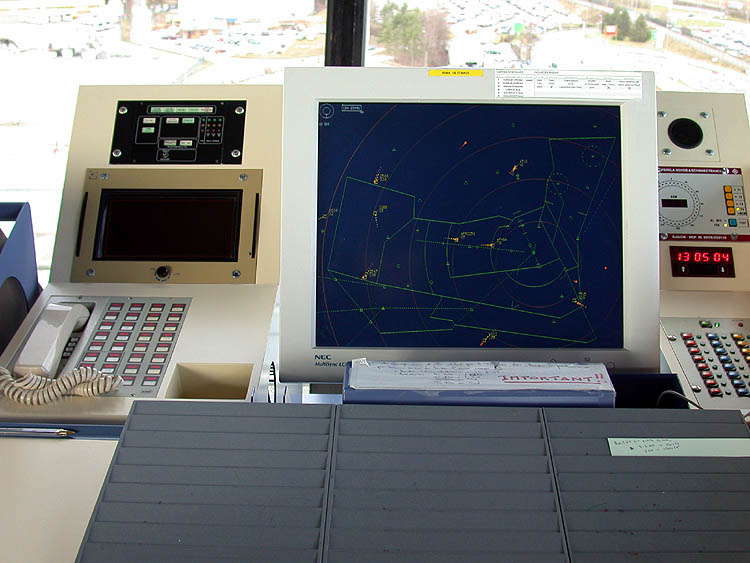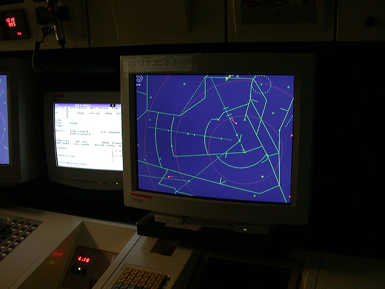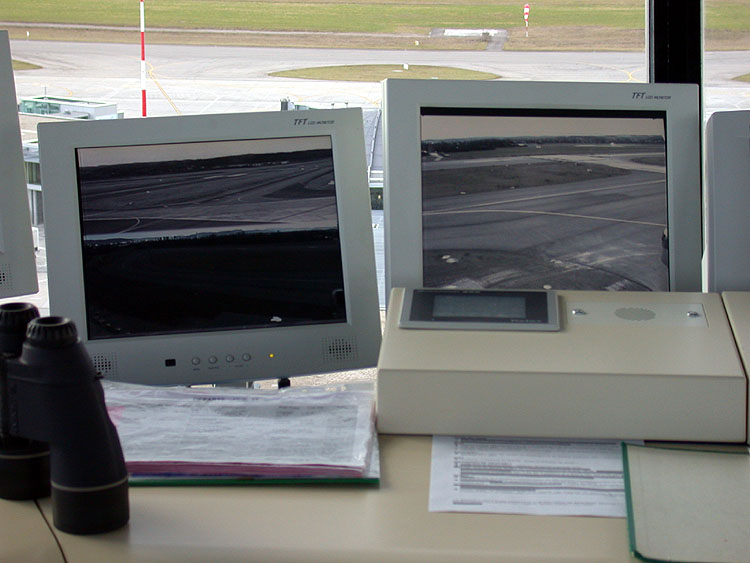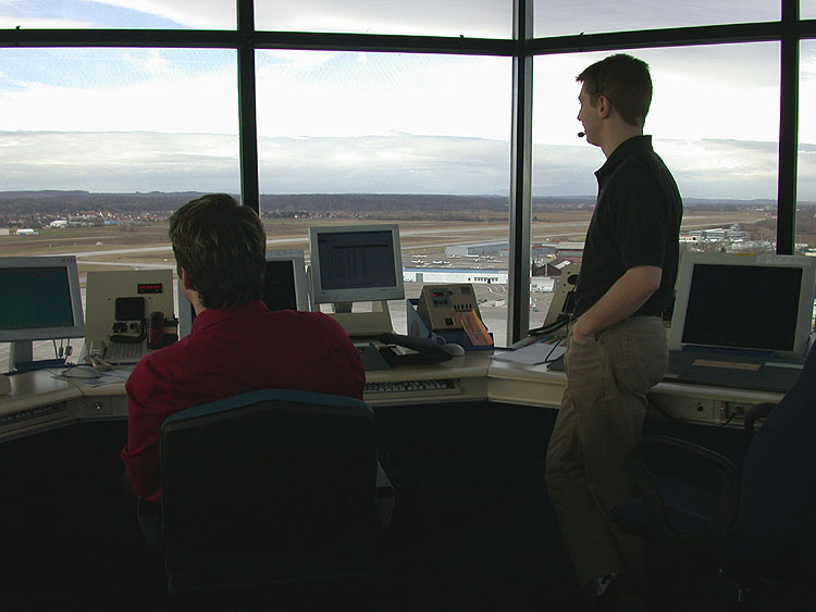 IFR-Raum im Tower des EuroAirport (11.02.02) Blick in die Kanzel des EAP-Kontrollturms (11.02.02)