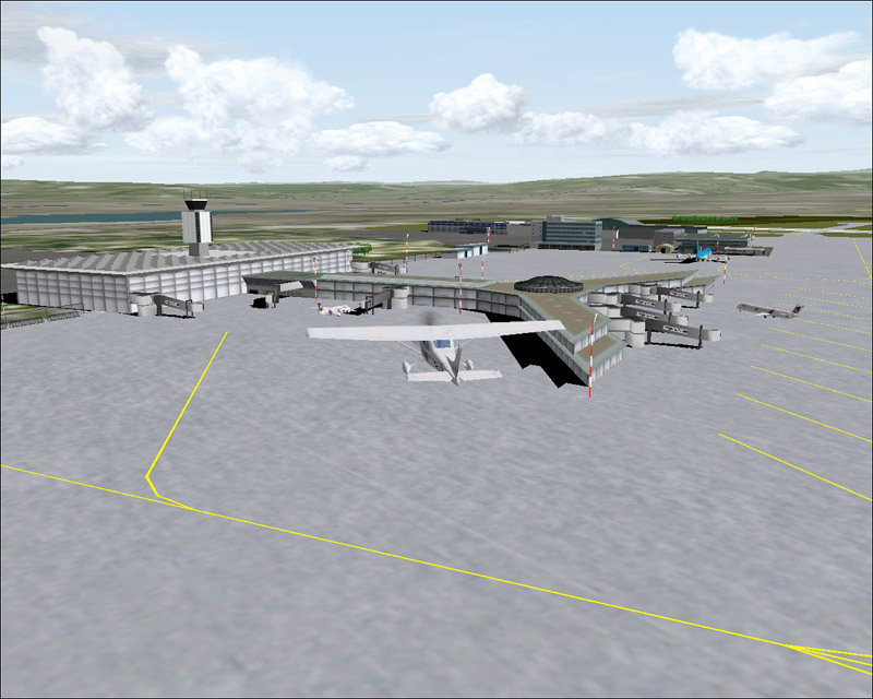 Basel - Den neuen Euroairport im Endausbau betrachten und bereits anfliegen? Mit dem PC-Flugsimulator von Microsoft soll das möglich werden. Jörg Unglaub aus Muttenz plant, den zukünftigen Euroairport als Software-Addon für den FS2000 herauszugeben. Der erste Screenshot verspricht eine detailgetreue Nachbildung des Basler Flughafens mit dem neuen Y-Fingerdock und dem (sich in Realität im Bau befindlichen) Terminal. Bisher wurde der EAP im FS2000 sowohl von der Standard-Szenerie als auch vom einzigen kommerziellen Addon nur im Zustand von ca. 1999 wiedergegeben. Szenerie-Designer Unglaub benötigt für sein Projekt nun noch mehr digitales Bildmaterial: "So soll Basel noch schöner werden!". (Post bitte an news@EAPnews.ch)
